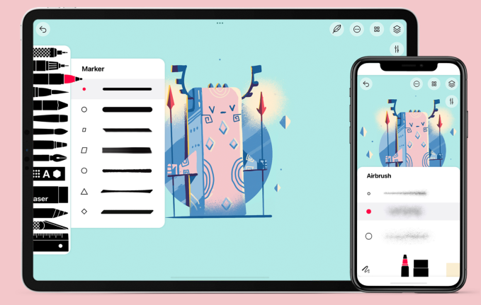 Aplikasi ini memiliki alat Nudge, Slice, dan Select yang memungkinkan kamu dengan mudah mengubah elemen dari sketsa tanpa harus menggambar ulang. Aplikasi ini juga menawarkan pena, pensil, dan kuas yang realistis yang mengikuti tekanan dan tilt.