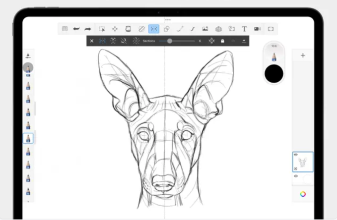 Procreate adalah salah satu aplikasi menggambar paling populer di iPad, dan ini bukan tanpa alasan. Aplikasi ini memungkinkan kamu membuat lukisan digital, sketsa, dan ilustrasi dengan berbagai jenis kuas. Procreate mudah digunakan dan memiliki kontrol gestur yang intuitif, bersama antarmuka yang simpel.